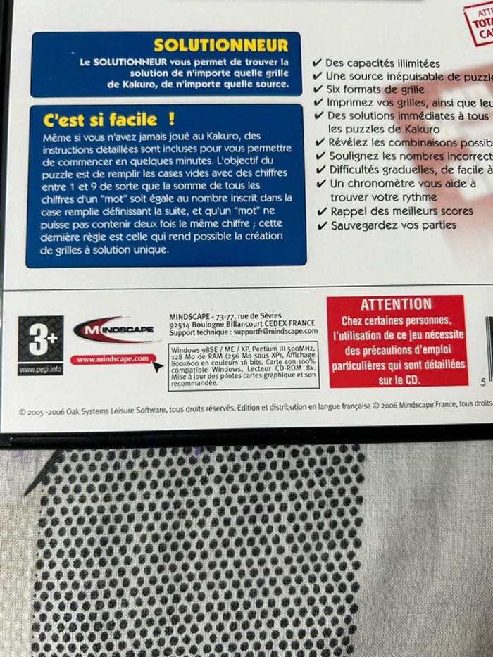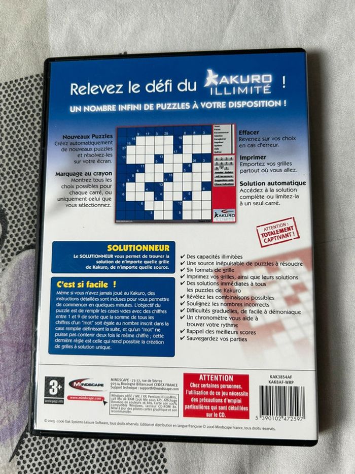 Jeu kakuro pour pc Windows 98(SE)/ME/XP tout est en parfait état et fonctionne