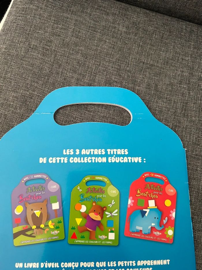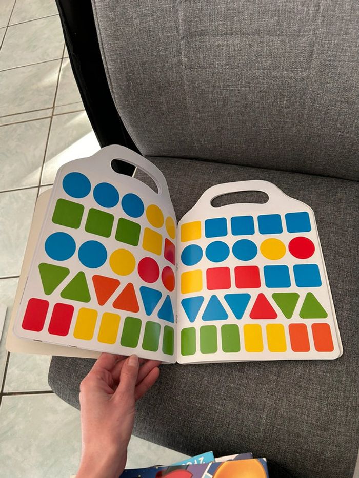 Livre d’activité avec gommettes j’apprends les couleurs et les formes jamais servi la couverture est un peu abîmé par endroit voir photo