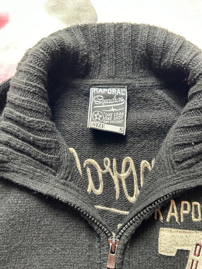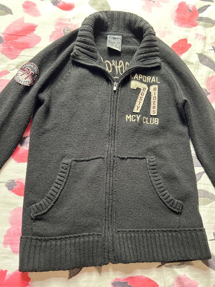 Gilet à fermeture chaud marque kaporal taille S porté quelque fois il y a juste quelques bouloches du à la matière Gilet composé de 30% acrylique , 40% laine et 30% nylon D’autres articles dans mon dressing n’hésitez pas