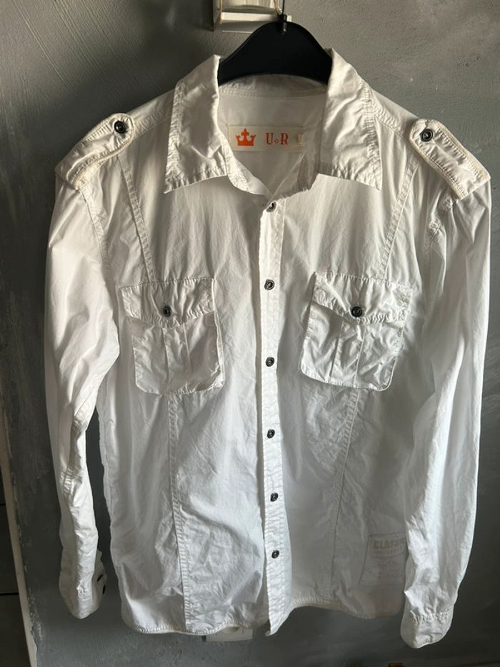 Chemise blanche avec motif écriture taille M très bon état D’autres articles hommes dans mon dressing n’hésitez pas