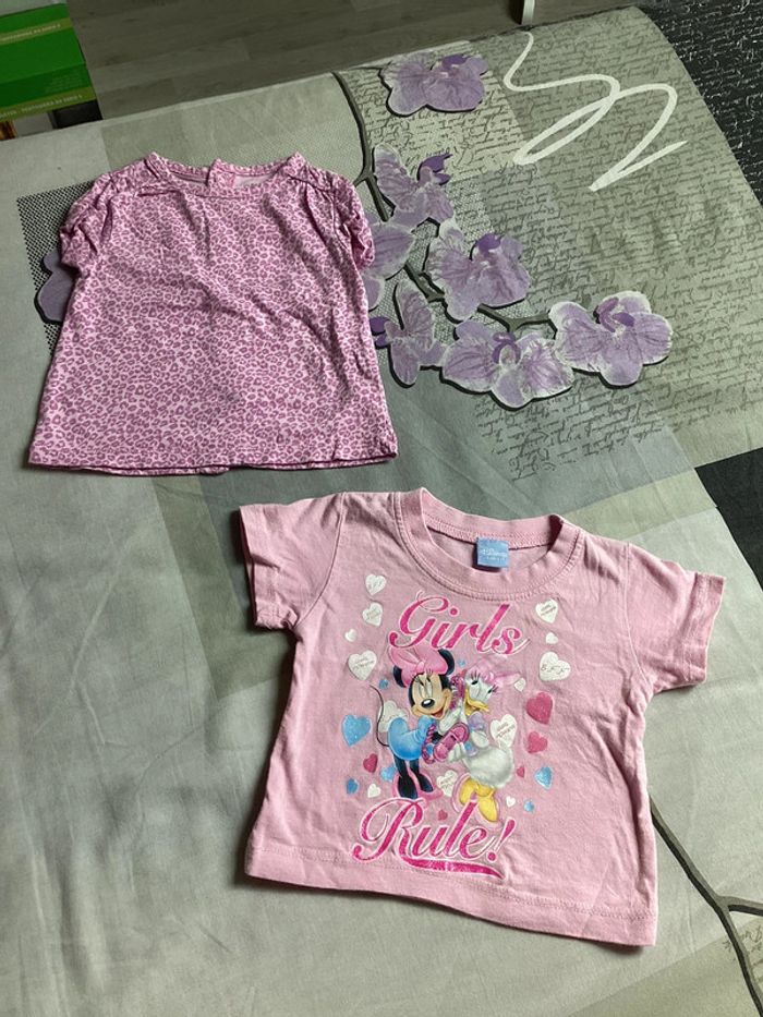 Lot de 2 tee shirt motif leopard et Minnie et daisy taille manquante sur le tee shirt Disney mais taille 3 mois voir photo Super état D’autres articles dans mon dressing n’hésitez pas