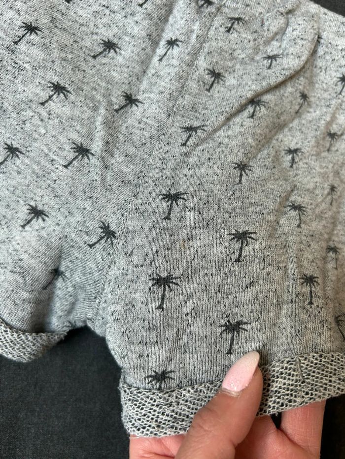 Short gris motif palmier taille 4 ans légère tache derrière sur un côté et devant voir dernières photos