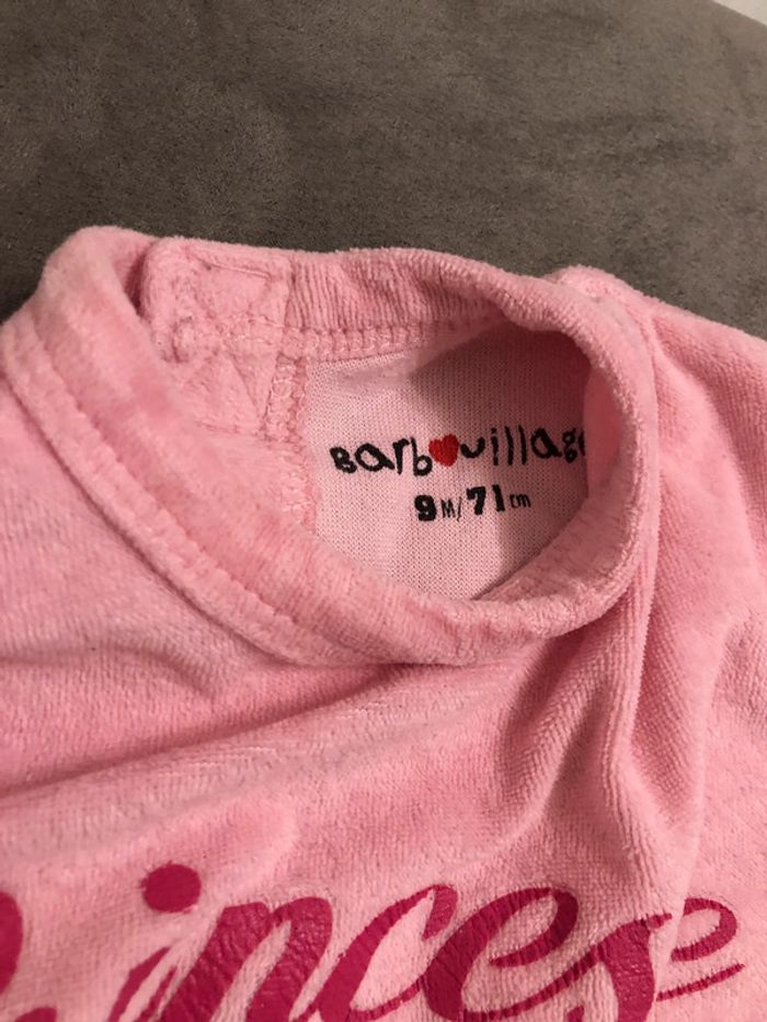 Pyjama inscription princesse à sa maman taille 9 mois porté mais encore en bon état juste un scratch est décousu sur un bord voir dernière photo