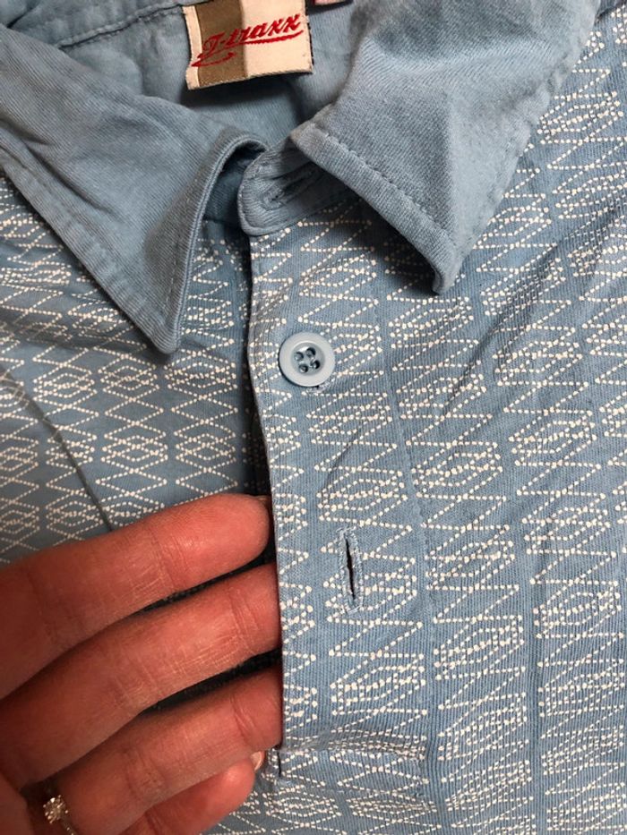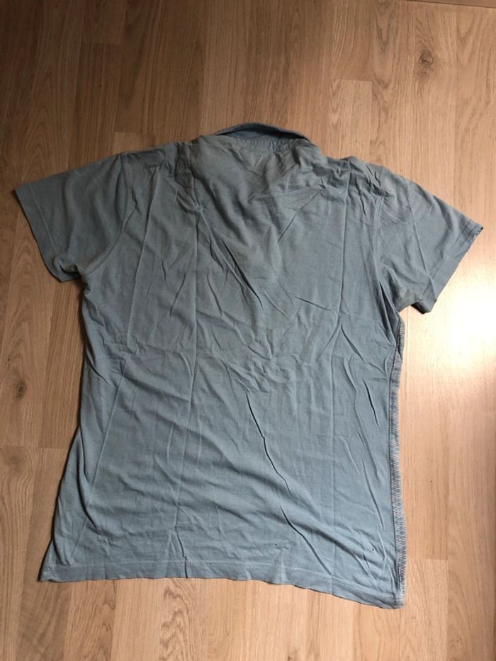 Polo bleu clair porté mais encore en bon état il manque juste un bouton voir photo taille M N’hésitez pas à me contacter si vous souhaitez des mesures D’autres articles dans mon dressing n’hésitez pas