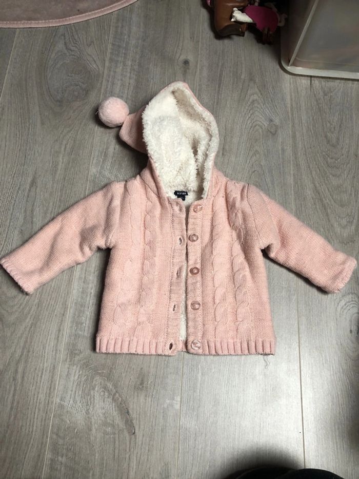 gilet rose fourré à l’intérieur avec fil pailleté taille 9 mois très bon état d’autres vêtements bébé sont disponible dans mon dressing n’hésitez pas à composer un lot