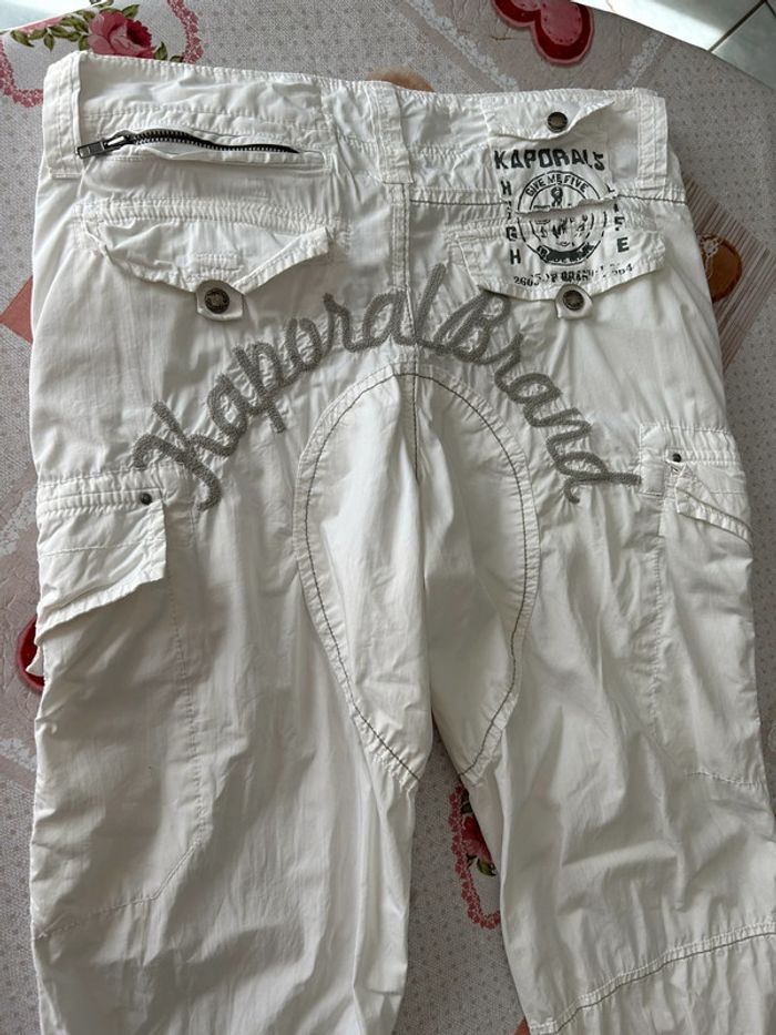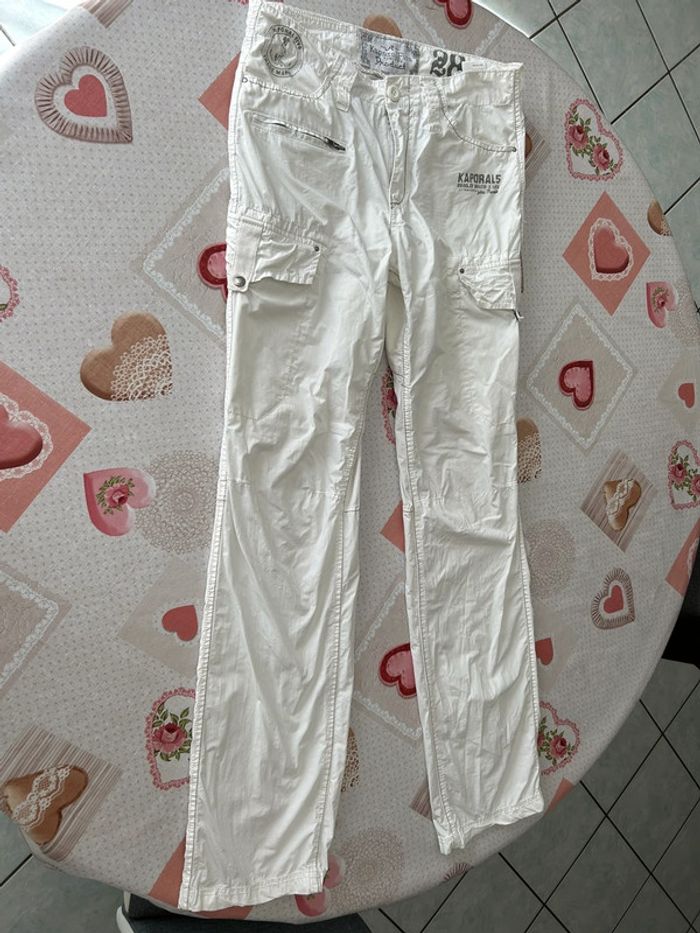 Pantalon léger blanc 100% coton marque kaporal taille 28 US Une petite tache sur une couture et quelques micro tache sur le bas du pantalon très léger voir dernières photos D’autres articles dans mon dressing n’hésitez pas