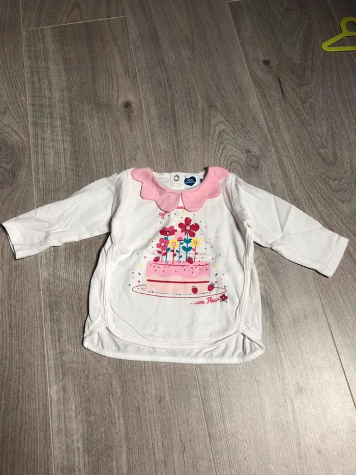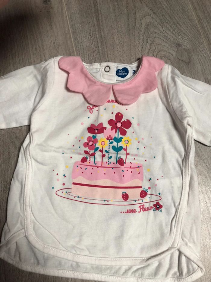 Tee shirt motif gâteau de fleurs taille 3 mois très bon état D’autres articles dans mon dressing n’hésitez pas