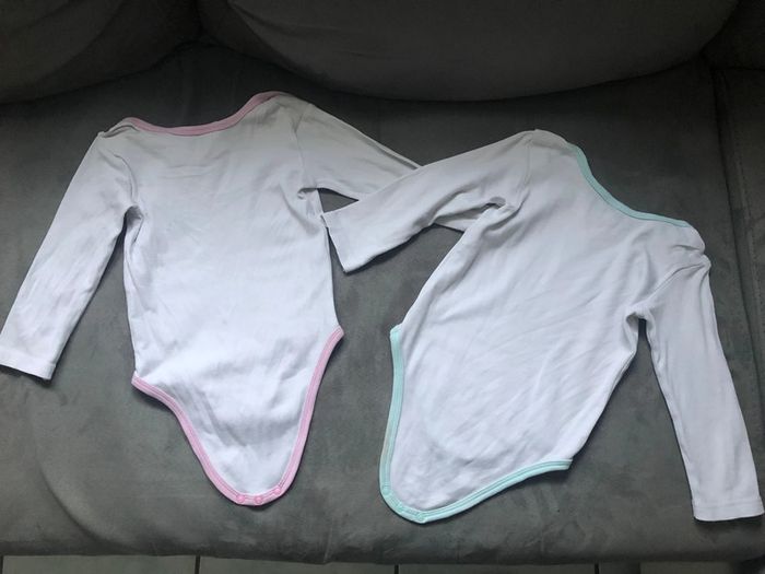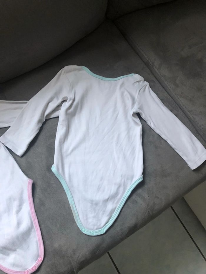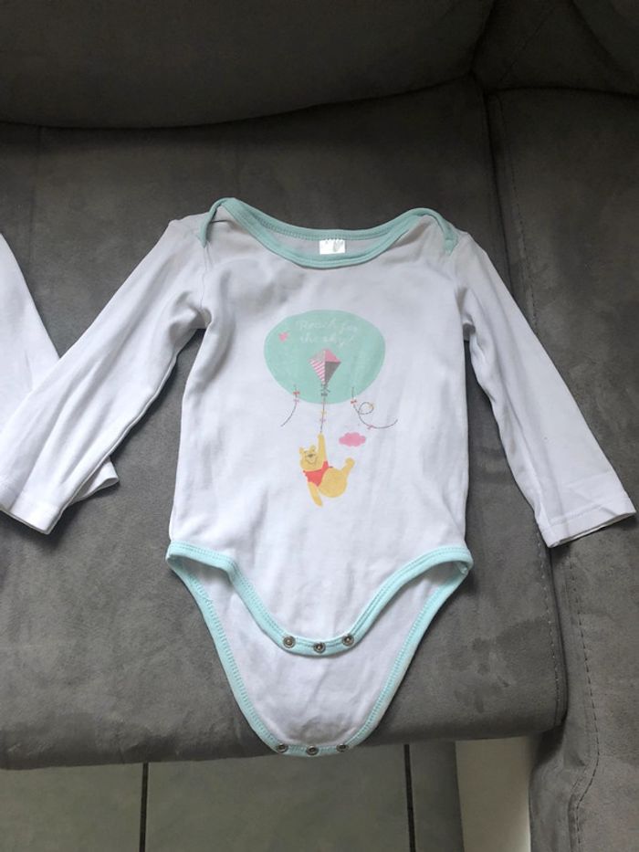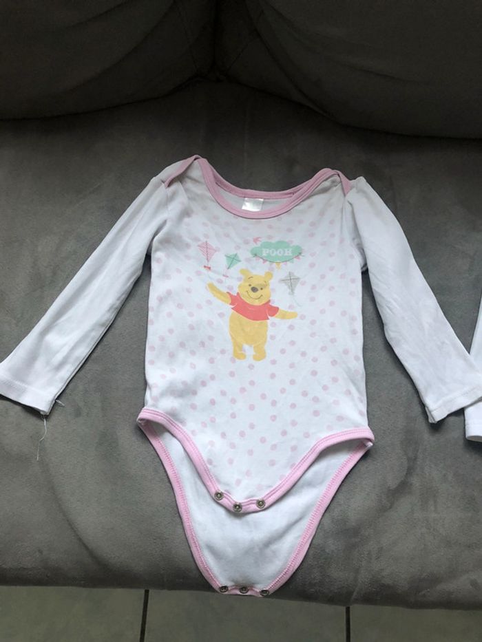 Lot de 2 body winnie manches longues porté il y a une légère tache sur le bord d’une entrejambe , au col du body rose et sur le revers d’une manche voir photo 5.6.7 les taches sont très légères Taille 18/24 mois 86/92cm D’autres articles dans mon dressing n’hésitez pas