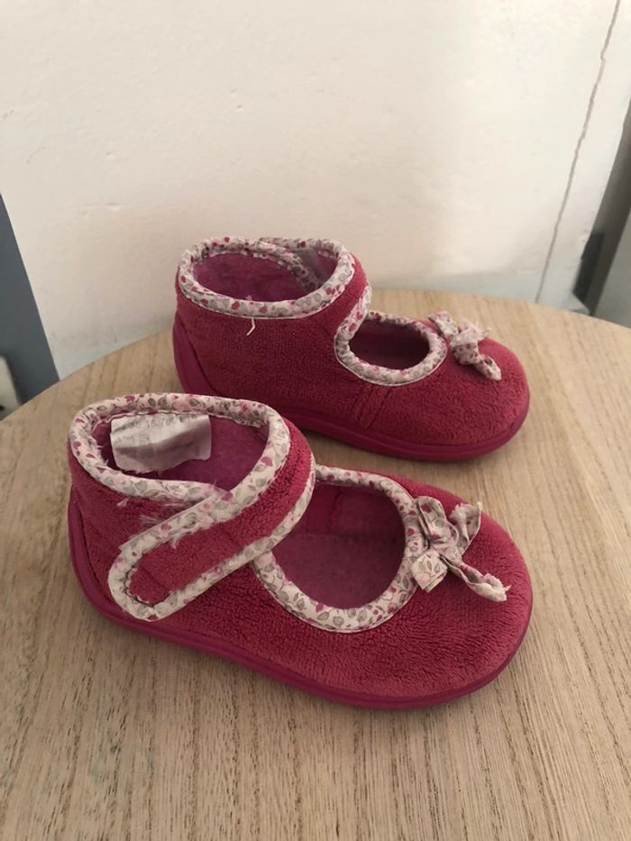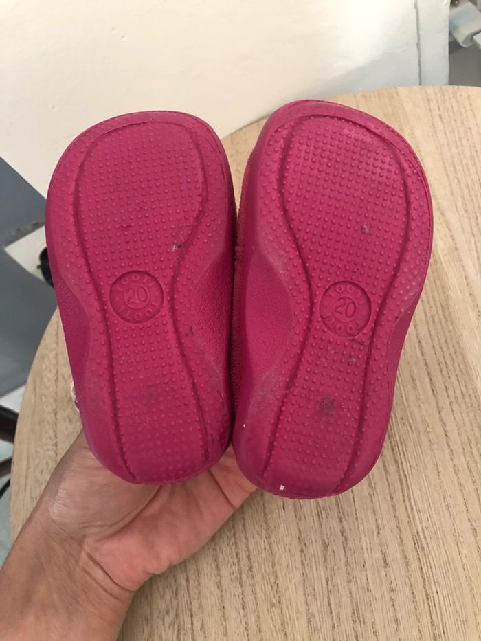Paire de chaussons taille 20 porté mais reste encore en très bon état juste la semelle intérieure est un peu bouloché voir sur photo Les scratch tiennent encore très bien Semelle extérieure intacte D’autres articles dans mon dressing n’hésitez pas
