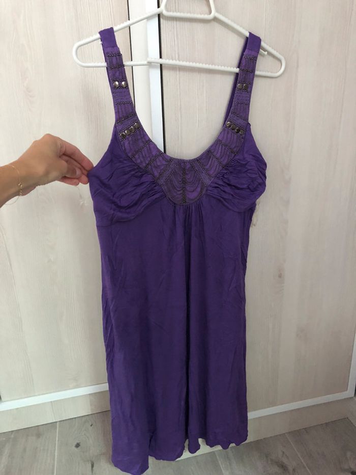 tunique robe violette avec chaînette taille L/XL deux petites chaînettes se sont décrochés sur le devant voir photo