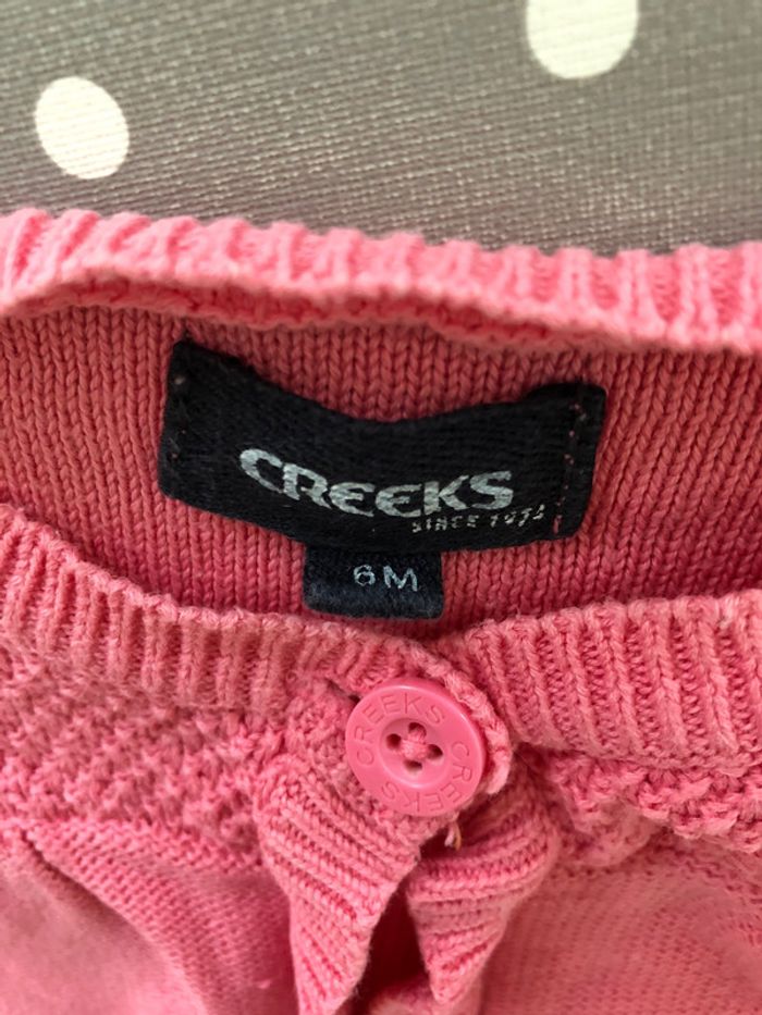 gilet rose taille 6 mois marque creeks très bon état n’hésitez pas à regrouper avec d’autres articles présent dans mon dressing