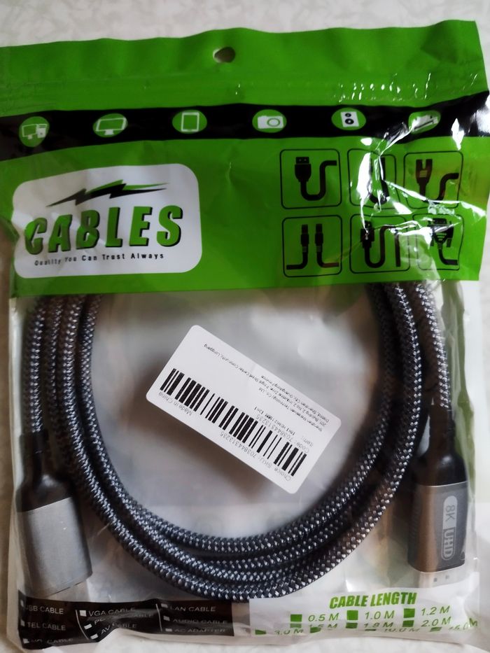 Cable Neuf HDMI 8K / 2.1 - 2 m compatible HDR UHD ARC 48Gb/Sec - 60 Hz - photo numéro 1