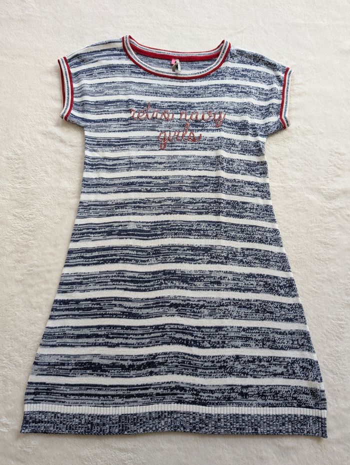 Robe d'été en laine fine Écritures brodées avec fils rouge et argent Taille 14 ans/164 cm