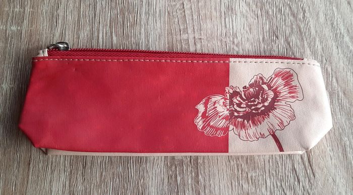 Trousse rouge et beige avec decor fleur 19.5 x 7 cm Neuve