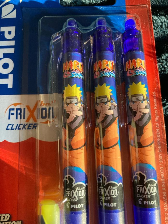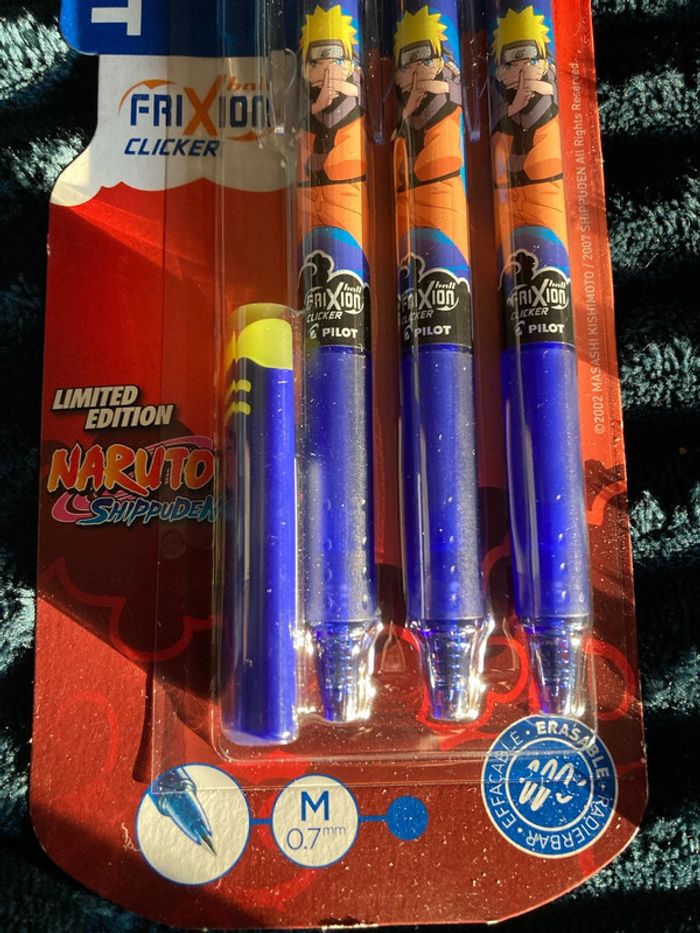 Lot de 3 stylos bleus Pilot frixion Naruto + gomme - photo numéro 1