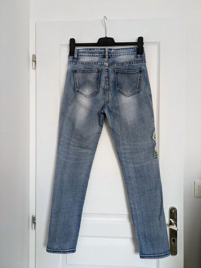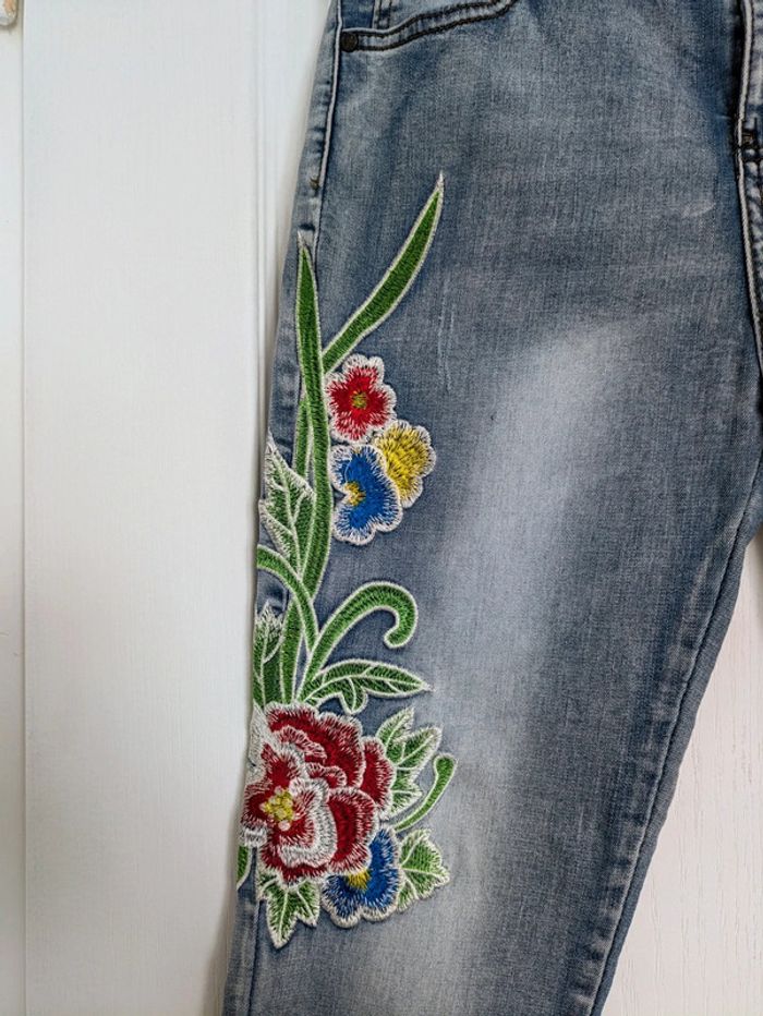 Jean d'été fleurs brodées - taille 38 - photo numéro 3