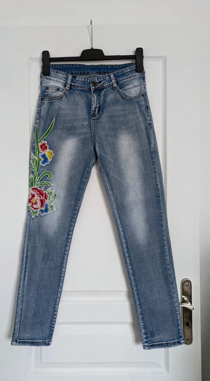 Jean d'été fleurs brodées - taille 38 - photo numéro 1