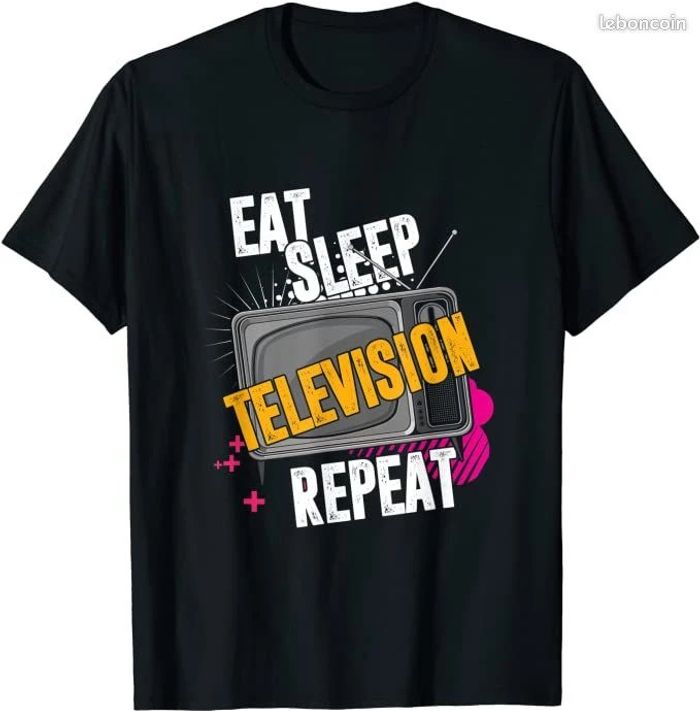 T-shirt homme humour manger dormir television noir txxl