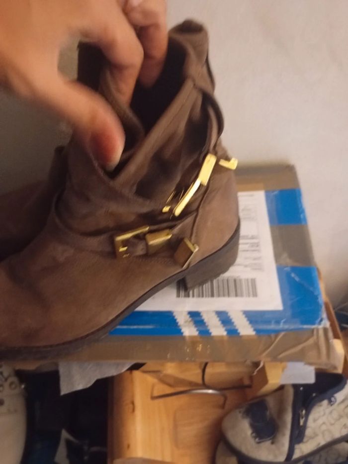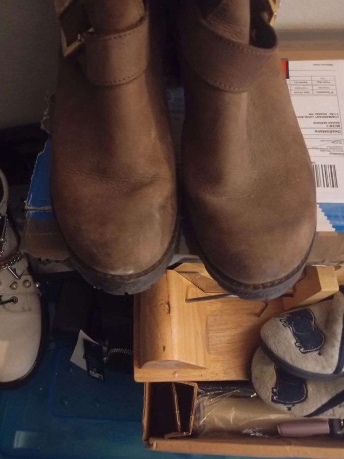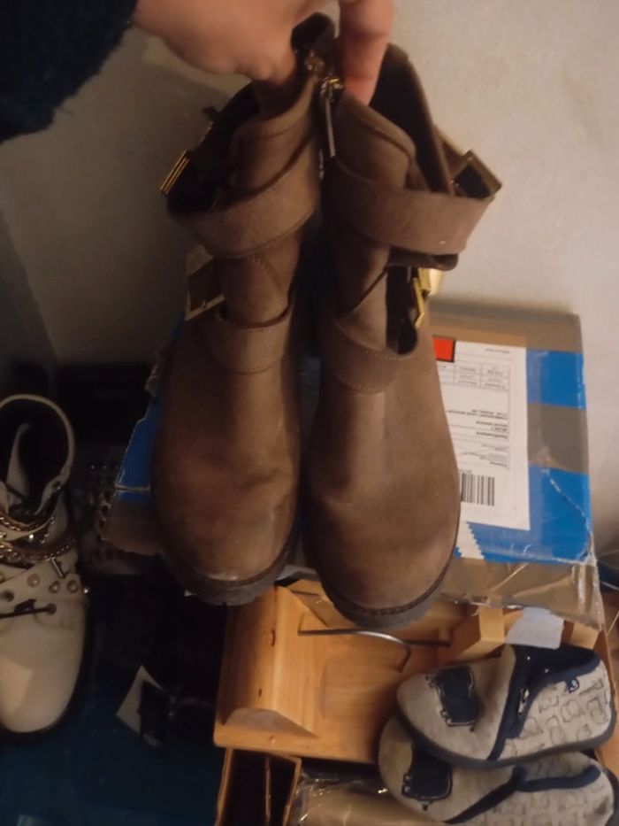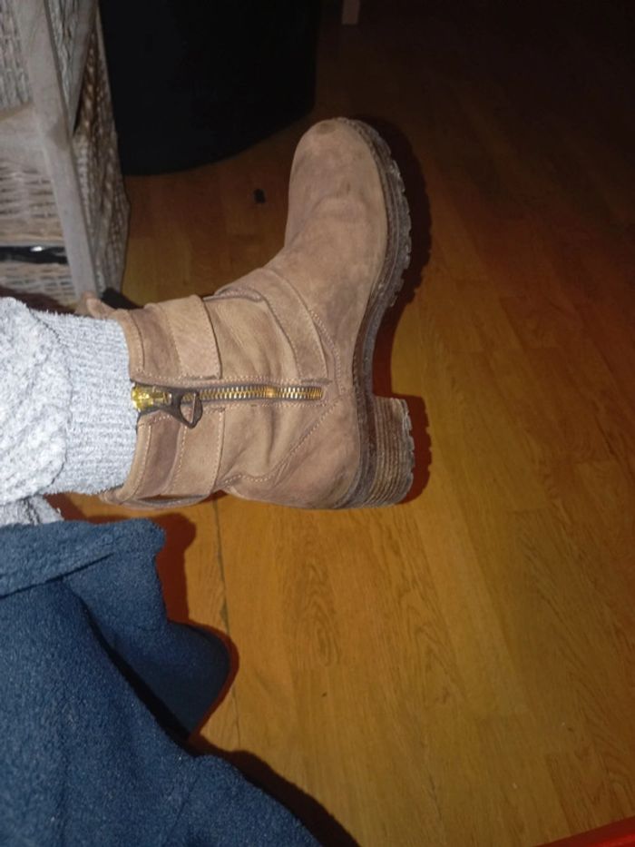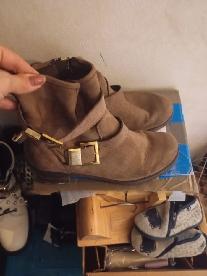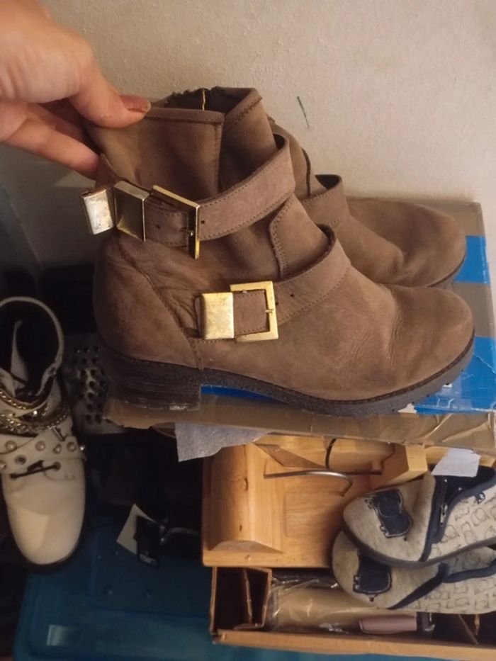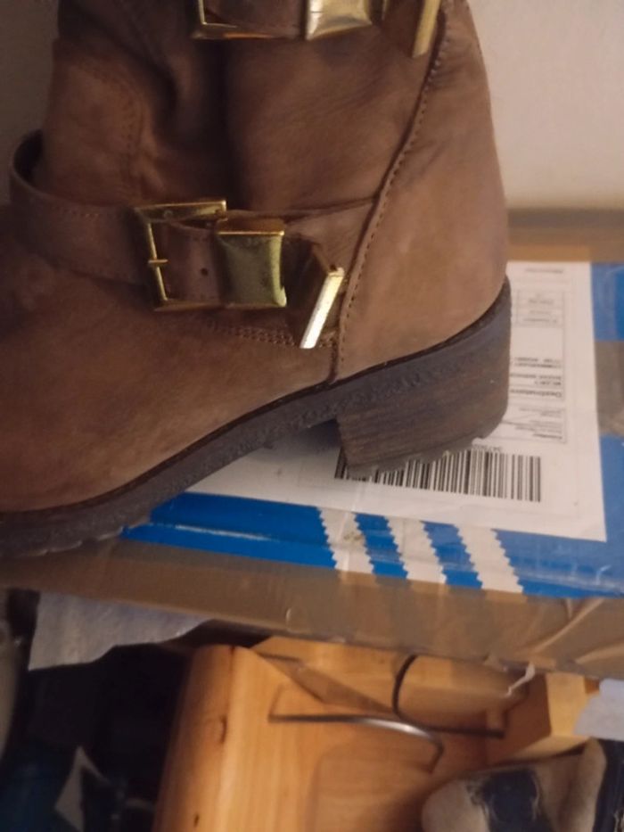 Petite bottine effet cuir bon état général peu portée Marron clair Fermé côté crampon Dégriffé