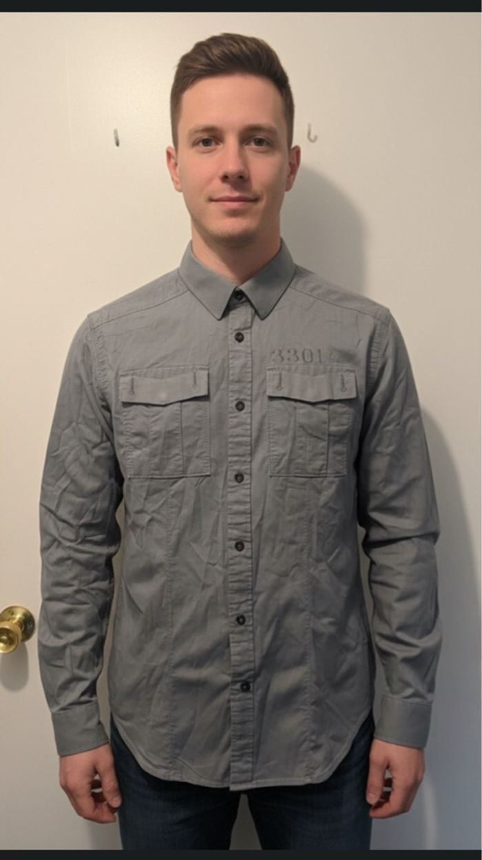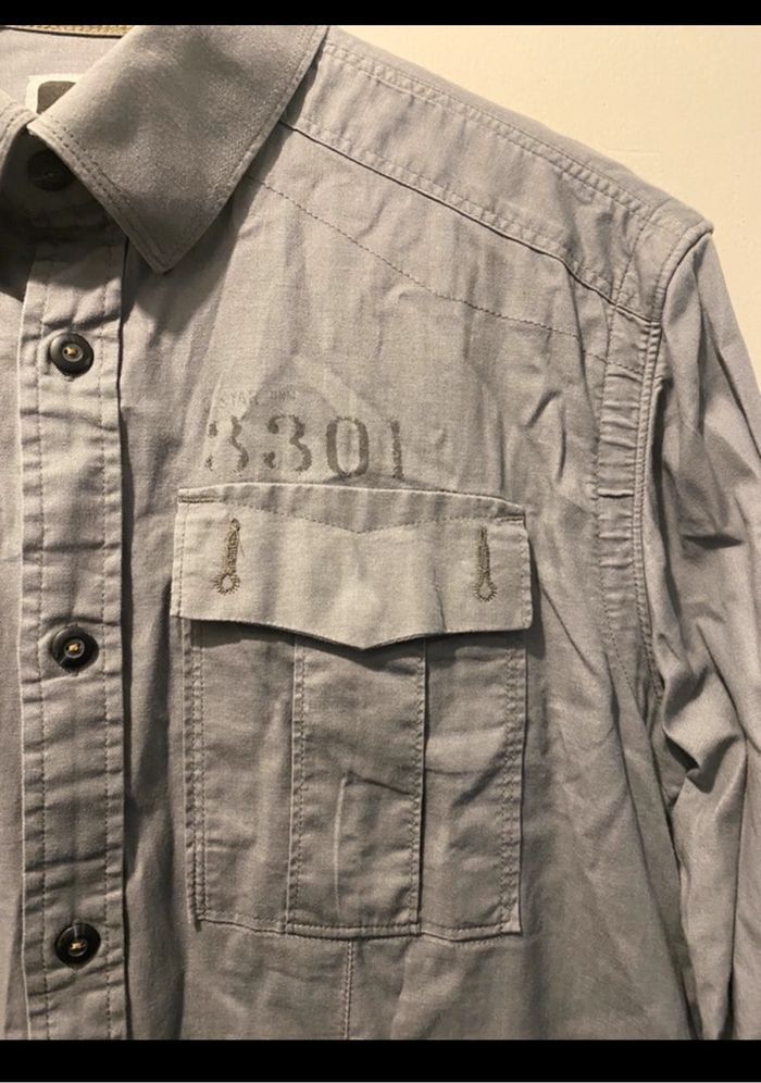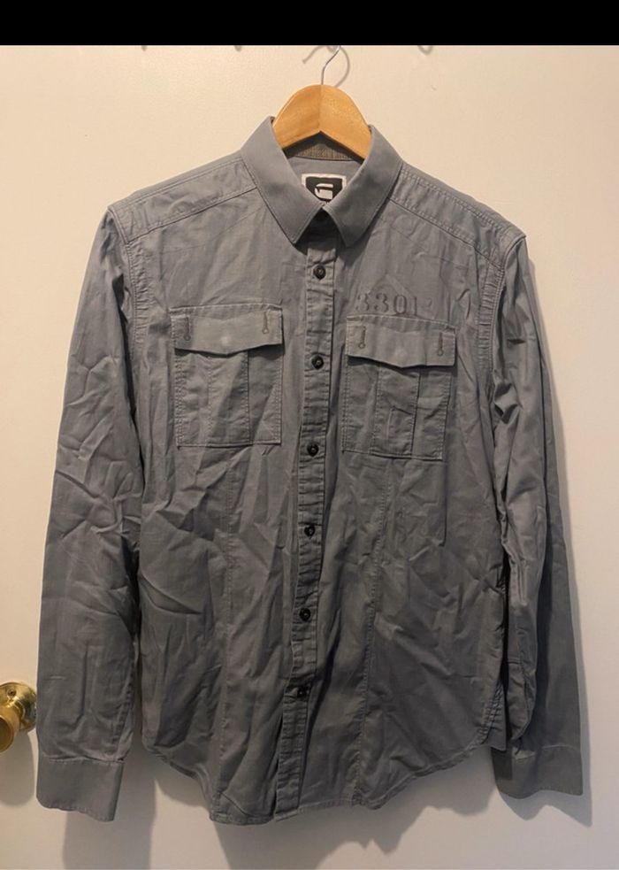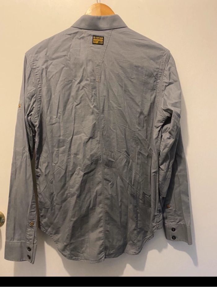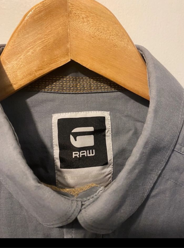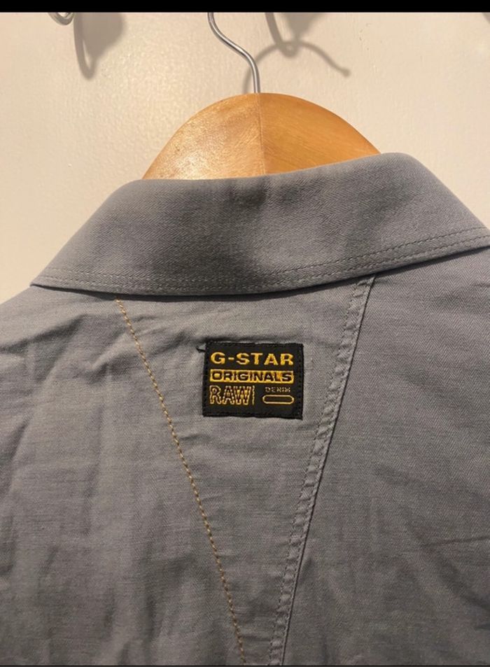 🌼Parfaite pour un look casual.Belle coupe, confortable et stylée. 📌 Marque : G-star 📏 Taille : M = 38 🎨 Couleur : gris 👔 Détail : imprimé g-star un peu effacé voir photo, 2 poches à l’avant
