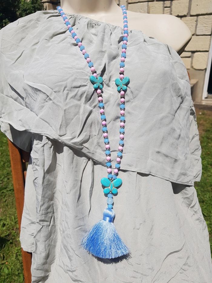 Article neuf avec étiquette Sublime Grand Sautoir Bohème en pierres et perles Papillons avec pompons. Livraison soignée et réduction sur les lots 👍 #naesahbijoux Bijoux Fantaisie bijou inspiration mino du sud pompons pierre perles Papillons collier large long Bohème chic ethnique élégant femme adolescente ado mode fashion fashionista outfit accessoire accessoires femmes décontractée neuf petit prix réduction #vintedgift cadeau