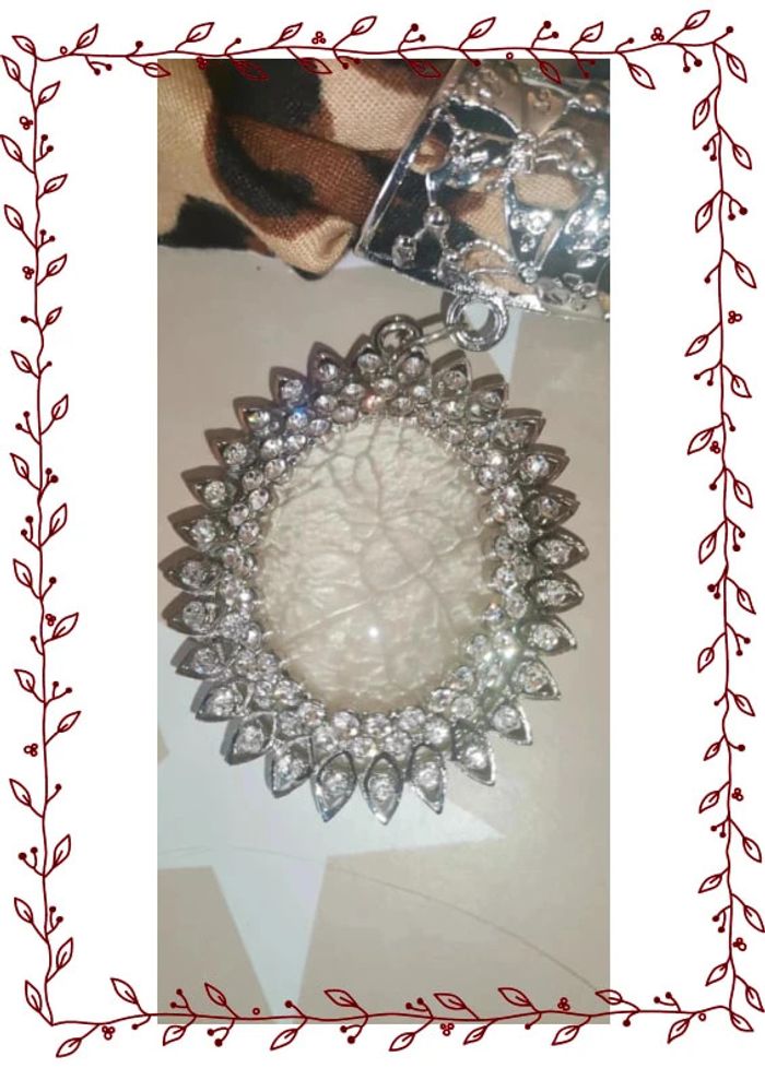 article neuf sans étiquette Sublime Bijoux de Foulard Grand Pièce Ovale style Pierre Ornements de Strass. Très Chic. Couleur argentée. Foulard offert avec le bijou. Livraison soignée et réduction sur les lots 📦💕 #naesahaccessoires Accessoire mode fashion outfit cadeau cadeaux bijou argenté fantaisie strass animaux bijoux tourtue strass brillant foulard écharpe réduction petit prix élégant camé baroque rococo