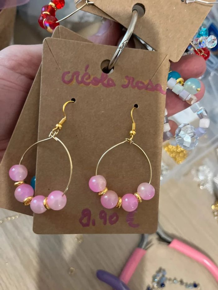 Créole rose en acier inoxydable et perles en verre Prix non négociable merci