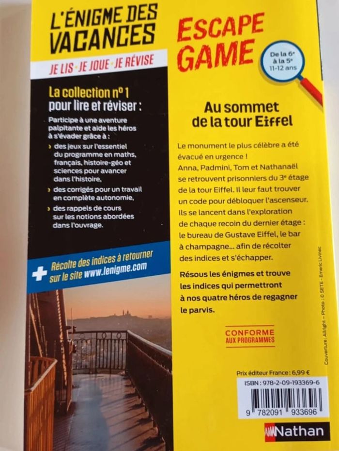 L'énigme des vacances Escape Game - Au sommet de la tour Eiffel - 6e vers 5e