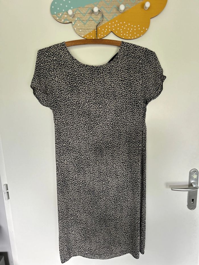 Robe fluide très légère , coupe droite avec petit noeud dans le dos. Imprimé léopard Être impeccable Je ne connais pas la matière #cococora69_36