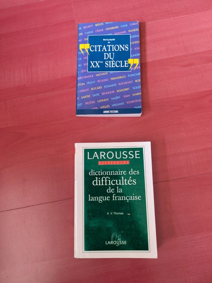 Lot de 2 livres composé du dictionnaire des difficultés de la langue française Larousse référence et de la Mini encyclopédie des citations du 20e siècle