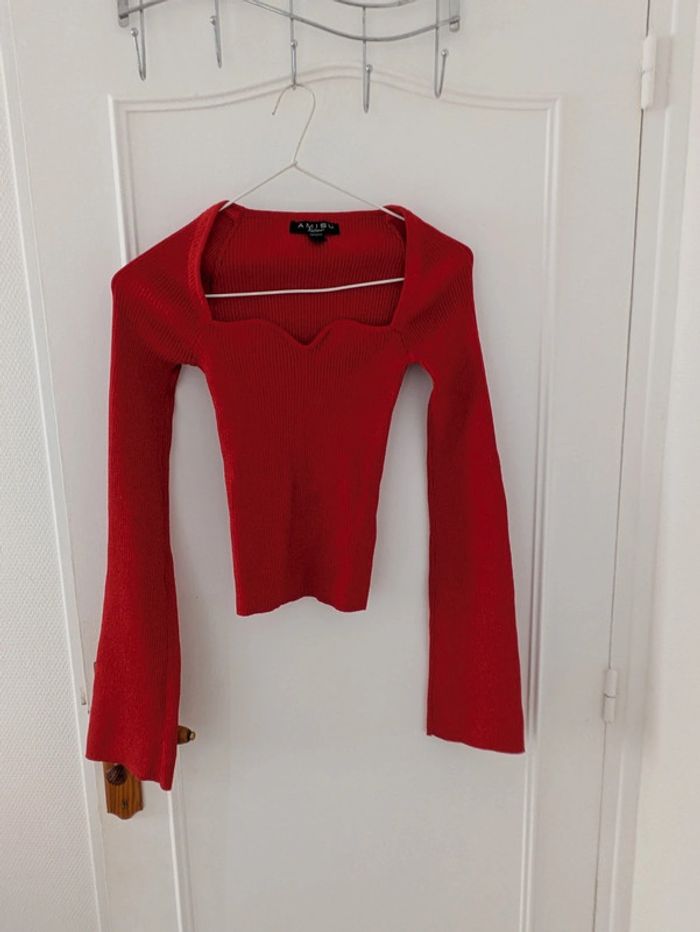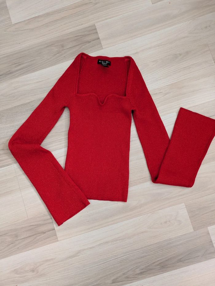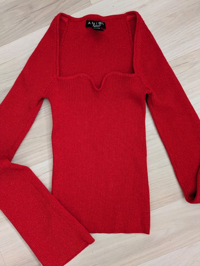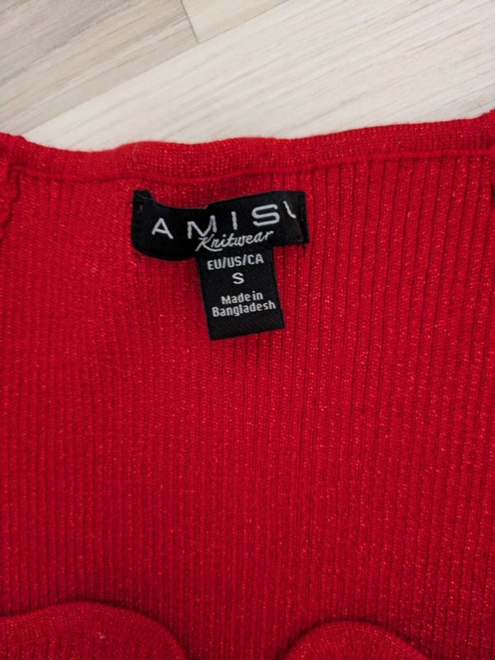 Pull femme taille S marque Amisu rouge avec fils rouges brillants