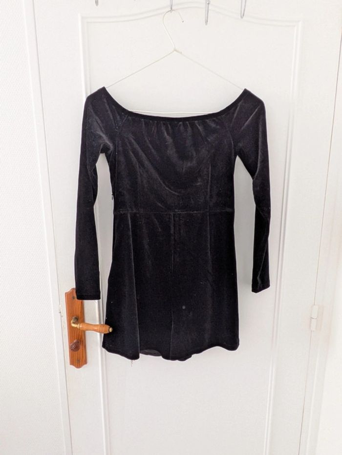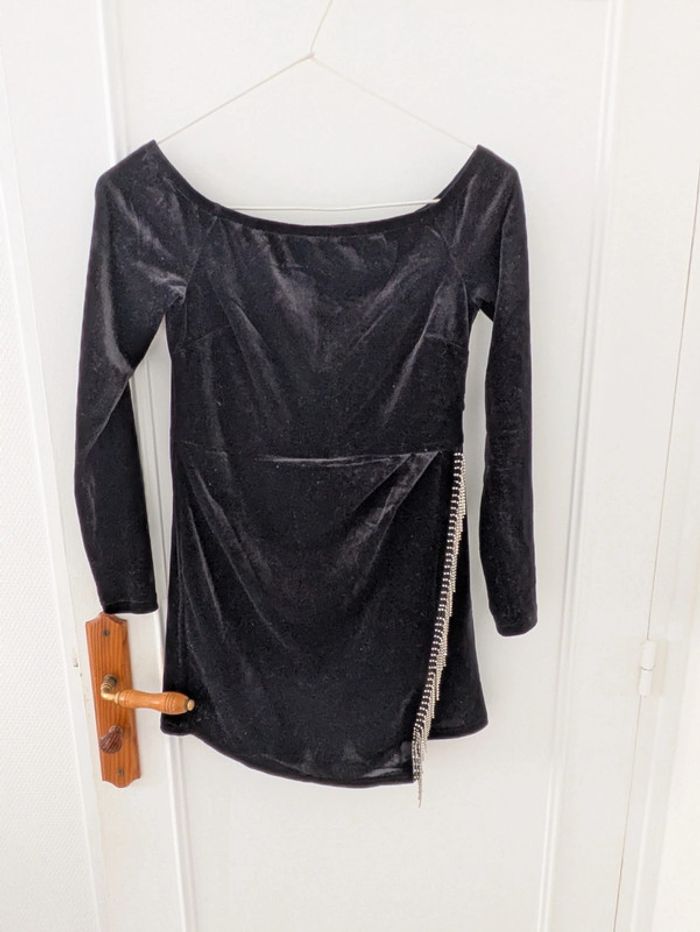Robe femme velours taille S noir avec perles strass sur le côté, short en dessous, sexy sans être vulgaire.