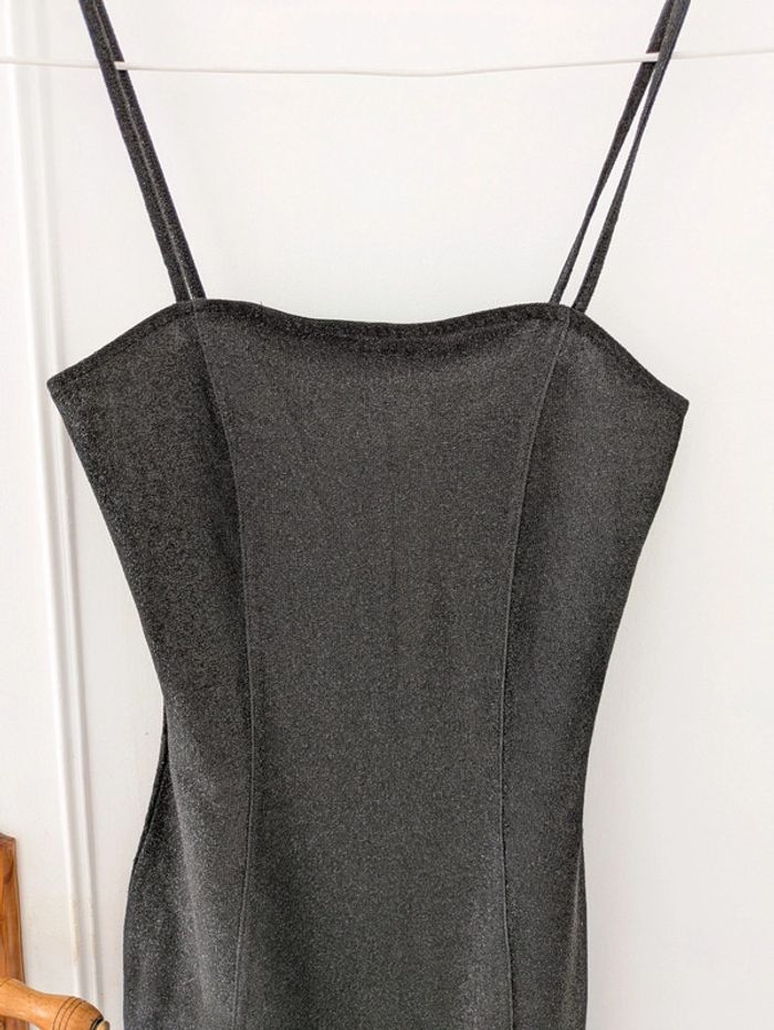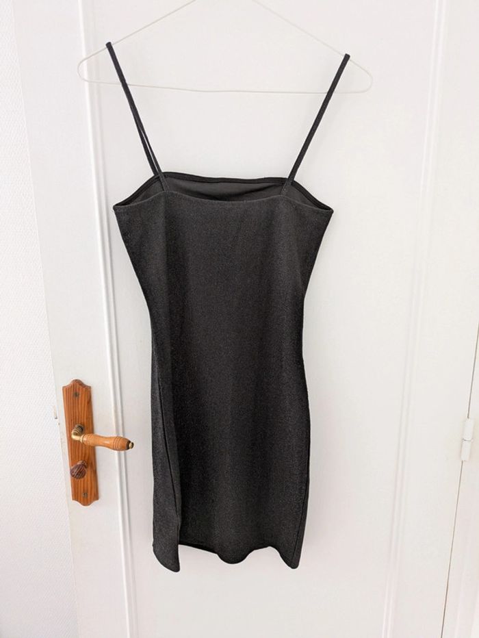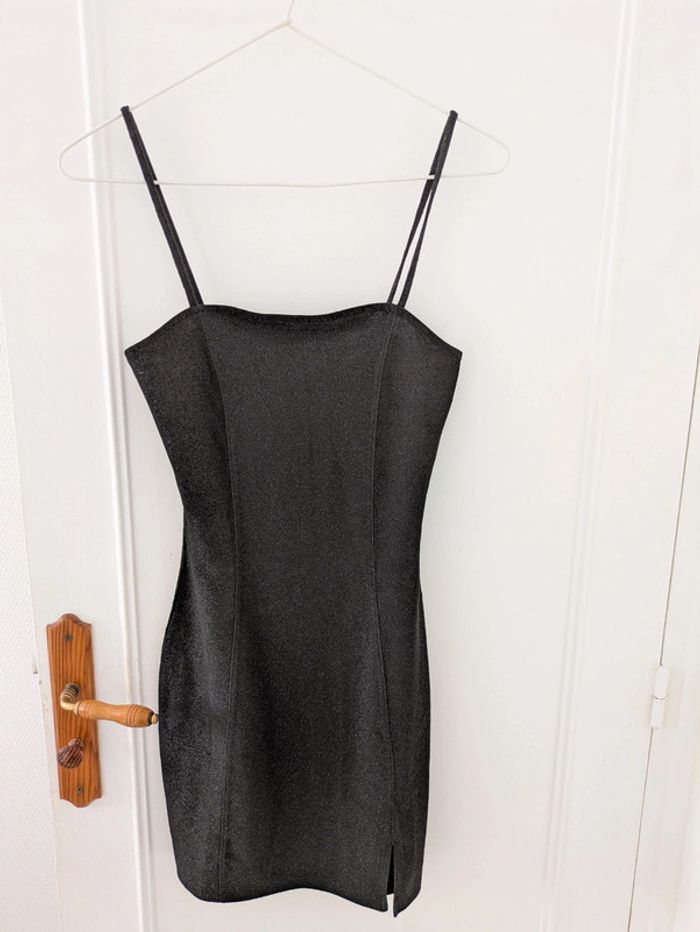 Robe courte femme taille s. Bretelle spaghetti marque Divided H&M noir avec paillettes noires brillantes. Petite échancrure sexy sans être vulgaire à l'arrière côté droit de 8 cm Très bon état proche du neuf. Longueur totale 66 cm, 81 cm en partant des bretelles. Mes autres annonces de même taille #joeypotter91_femmetaille36 #joeypotter91_filleseizeans (La taille S est généralement équivalente à du 16 ans fille dans le prêt-à-porter) [Sac T36]