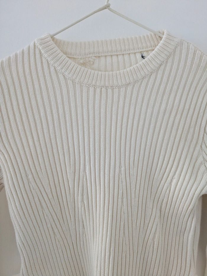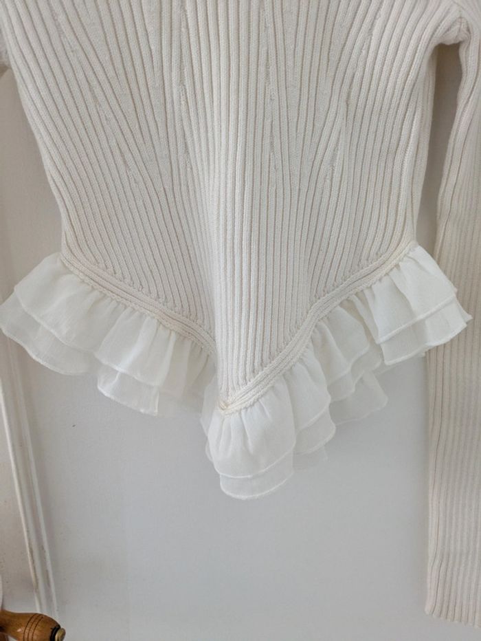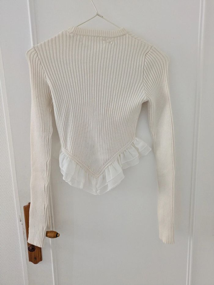 Pull femme taille XS modèle en pointe avec voile en bas blanc. Très sympa