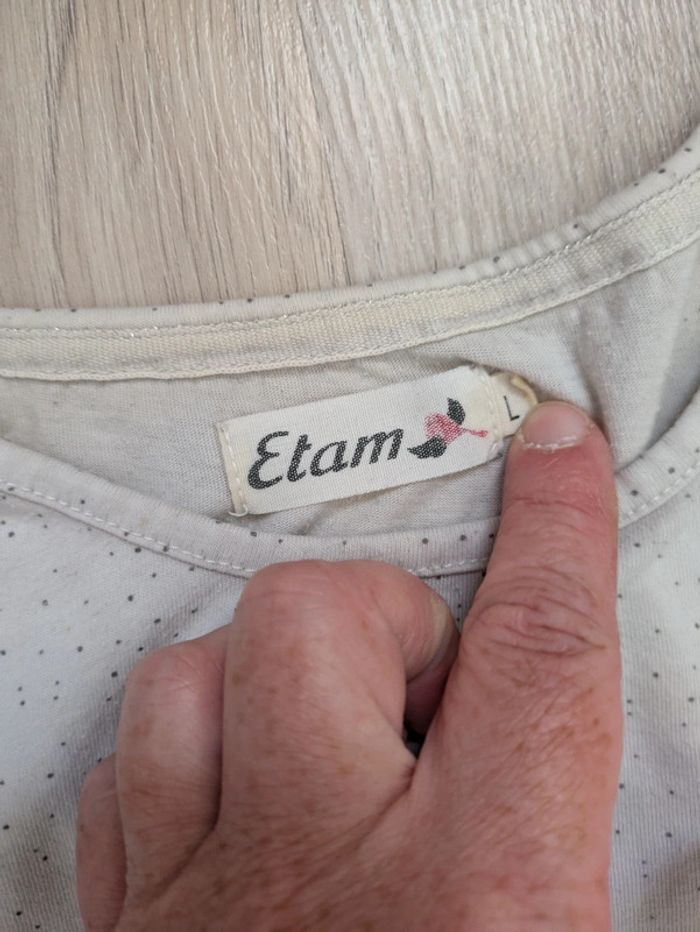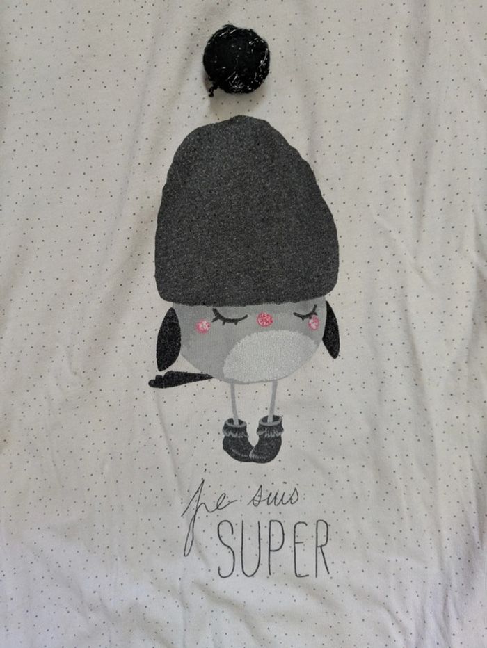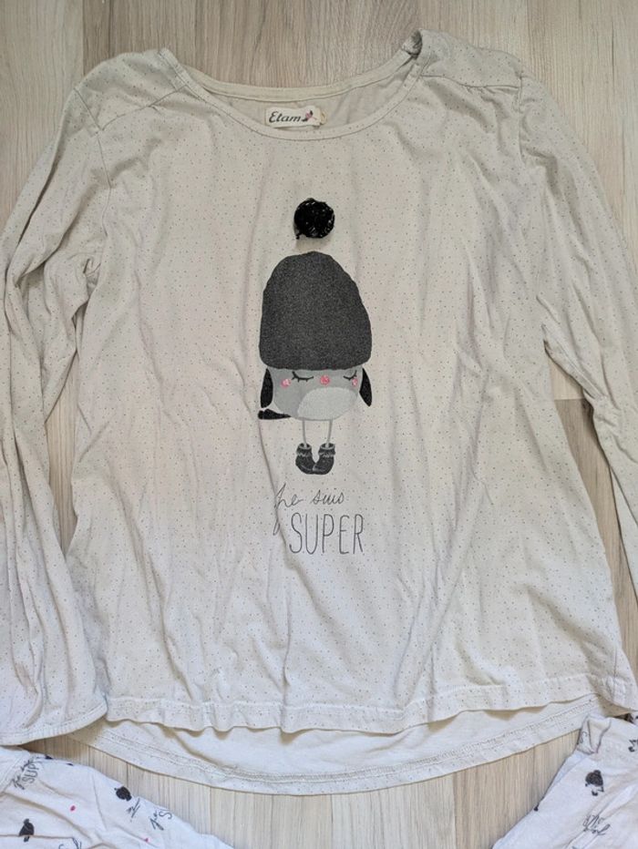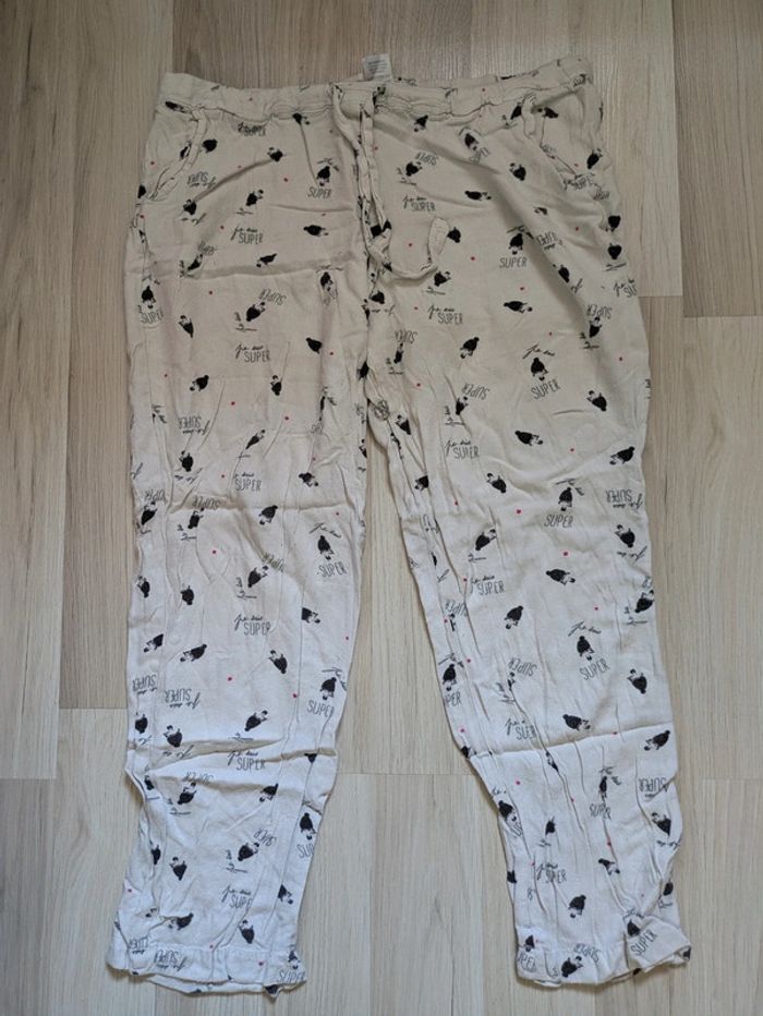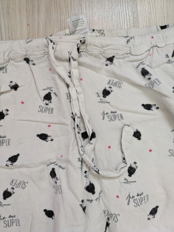 Pyjama femme taille L marque Etam motif petit pingouin inscription je suis super. Le pantalon est pas mal détendu. Du coup tout petit prix pour ce pyjama