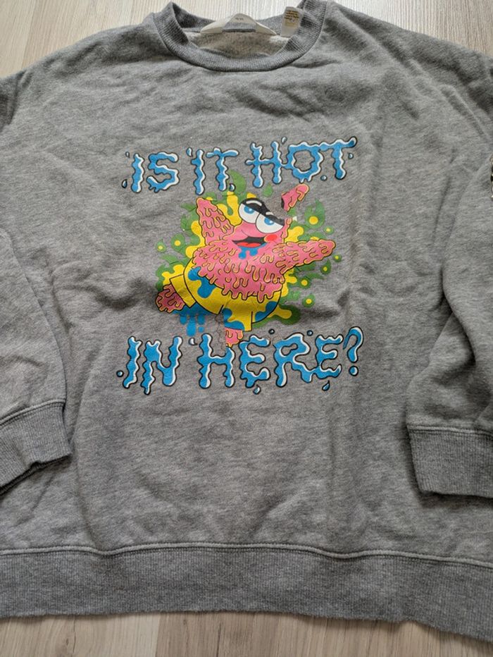 Sweat garçon 9 ans marque H&M collection Bob l'éponge avec imprimé devant et sur la manche gauche. Je donne avec un bermuda assorti car l'image est quelque peu effacée mais il peut encore bien servir donc cadeau avec ! :) Mes autres annonces du même âge #joeypotter91_garçonneufans [Sac raton laveur]