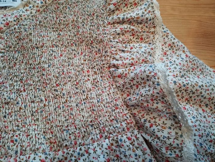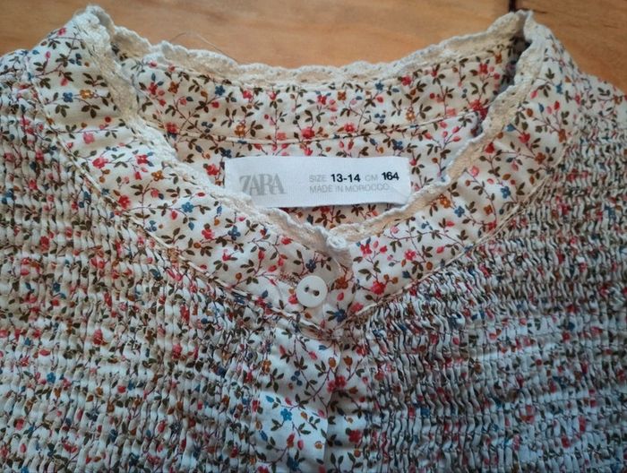 Très belle tunique en liberty et poitrine smockée. Marque Zara Taille 13-14ans Très bon état Pensez à regarder mes autres ventes, beaucoup de marques à petits prix et toutes tailles.