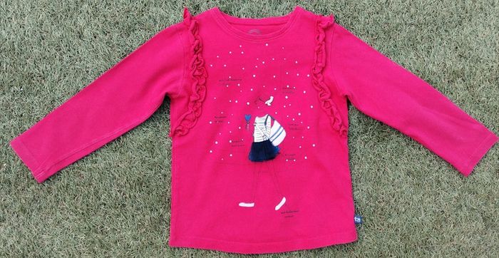 Beau petit haut à froufrous Marque LA COMPAGNIE DES PETITS Taille 5ans Très bon état Pensez à regarder mes autres ventes, beaucoup de marques à petits prix et toutes tailles.