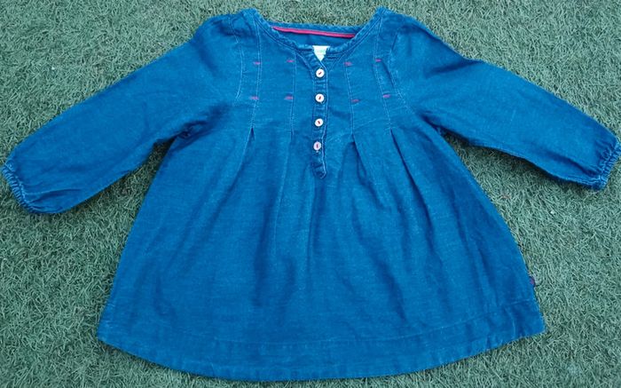 Belle tunique en jeans Marque obaibi Taille 12 mois Très bon état Pensez à regarder mes autres ventes, beaucoup de marques à petits prix et toutes tailles.