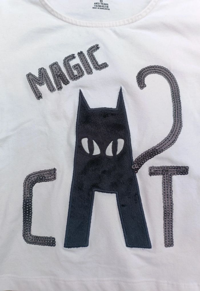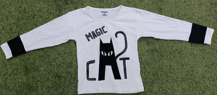 Tee shirt à manches longues chat magique Marque Orchestra Taille 6ans. Très bon état Pensez à regarder mes autres ventes, beaucoup de marques à petits prix et toutes tailles.
