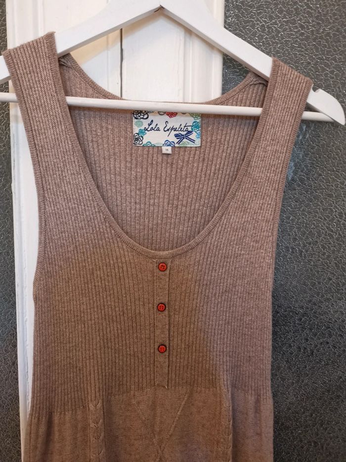 Robe sans manches Lola Espeleta. Maille fine, avec pleins de détails. Assez près du corps. Taille S/M Parfaite demi saison. 4% cachemire Excellent état Robe sans manches Lola Espeleta