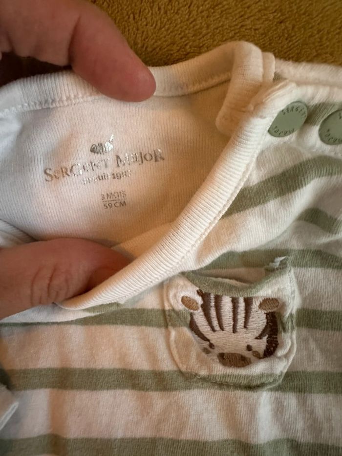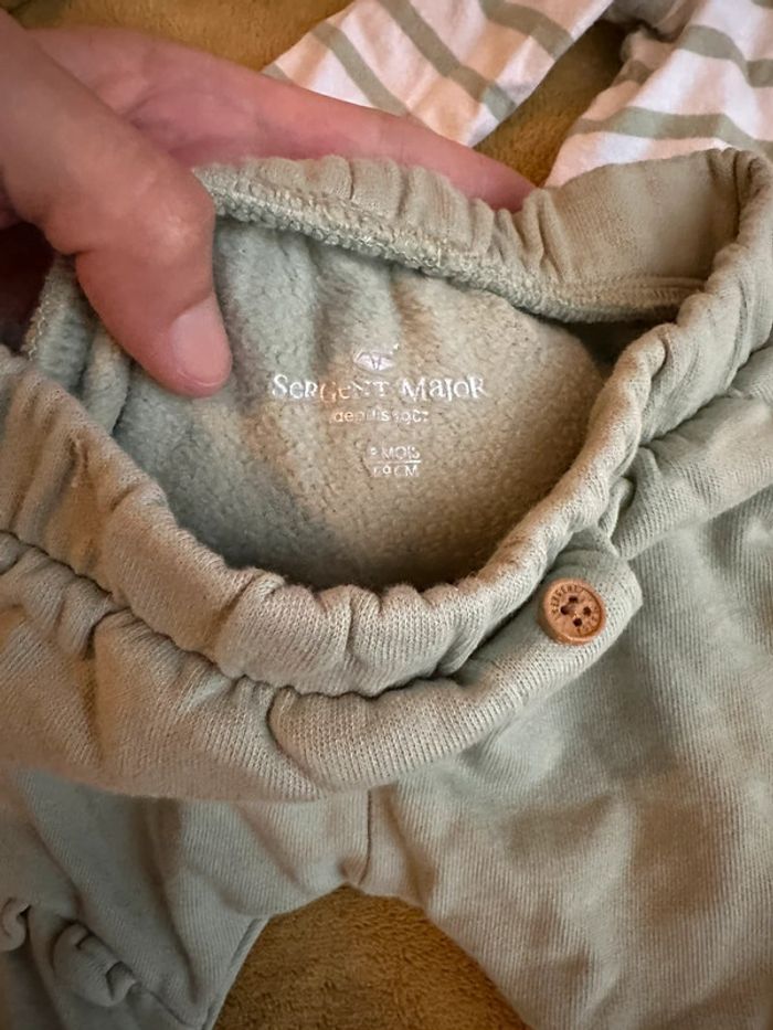 Ensemble bodie teeshirt et pantalon vert d’eau 3 mois Marque sergent major Porté 2 fois (1ere main) Le pantalon est tout doux à l’intérieur D’autres articles bébé dans le dressing avec réduction sur les lots activées Articles bébé 3 mois, cliquez ici : #polka3mois