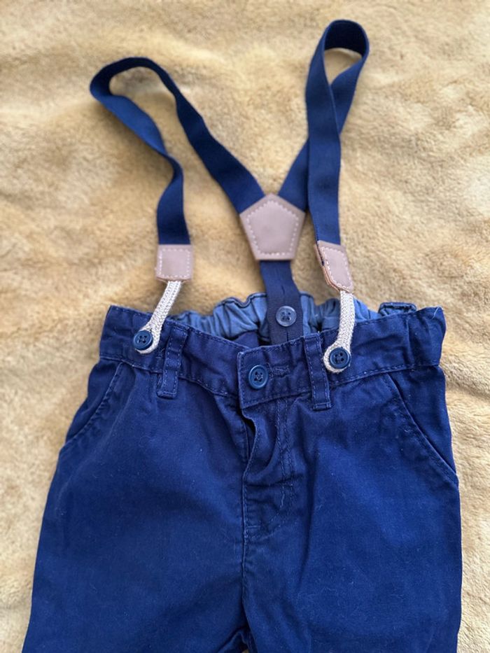 Pantalon marine à bretelles amovibles 12 mois - photo numéro 3