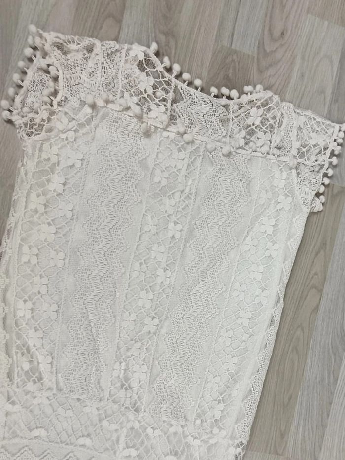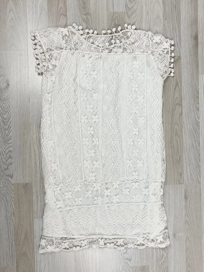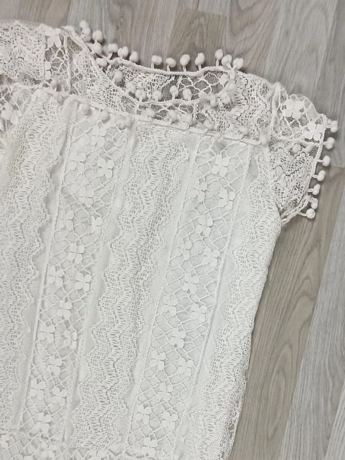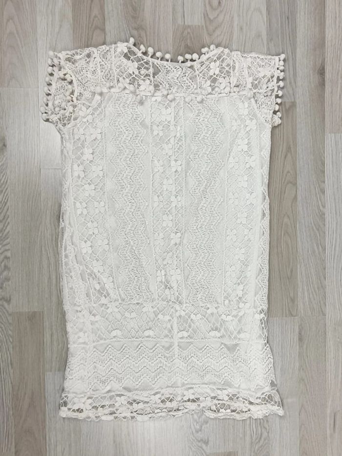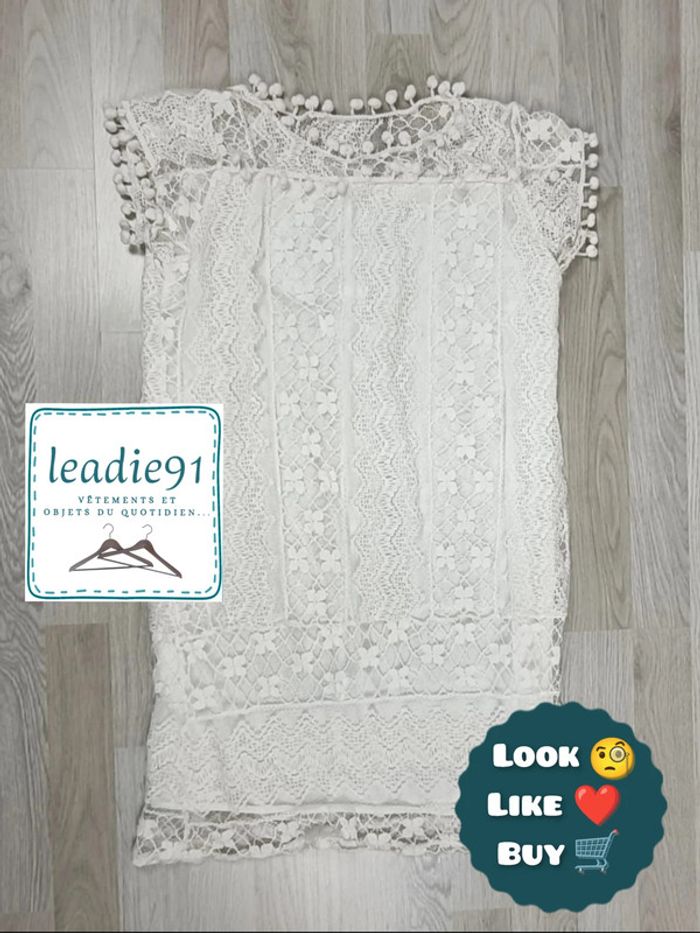 📄 robe courte ou blouse longue en dentelle ajourée semi transparente motif fleur blanc uni à manches courtes et col rond avec pompon fantaisie ; doublure après les épaules pour laisser le haut apparent sous la dentelle XL qui taille petit ; convient à 40 🌡️ saison : fin printemps - été - début automne 💡 idéal pour une sortie, une cérémonie... ​🖱️ Tous les vêtements de cette taille #leadie91femme40 ---------------------------------- 🔍 Pour faciliter vos recherches #️⃣ dressing trié par # (voir mon profil) 🎛️ #leadie91dressing et filtrez vos recherches ---------------------------------- 🗄️ En vente dans mon dressing : vêtements & accessoires femme, homme, adolescente, adolescent, fille, garçon et bébé, sacs, bijoux, produits hygiène et beauté, livres, jeux, jouets, fournitures scolaires, CD / DVD, vaisselle, décoration, rangement, linge de maison... ---------------------------------- 💸 Prix raisonnables 💸💸 Réductions lot 📍 Ballancourt-sur-Essonne pour RDV 🛒 Bon shopping ~ #leadie91 ♻️ 📝 Mots clés annonce site seconde main état description couleur composition tissu taille marque saison idée défaut y2k coquette habillée fête remise main propre 00 membre GentleVinties 24