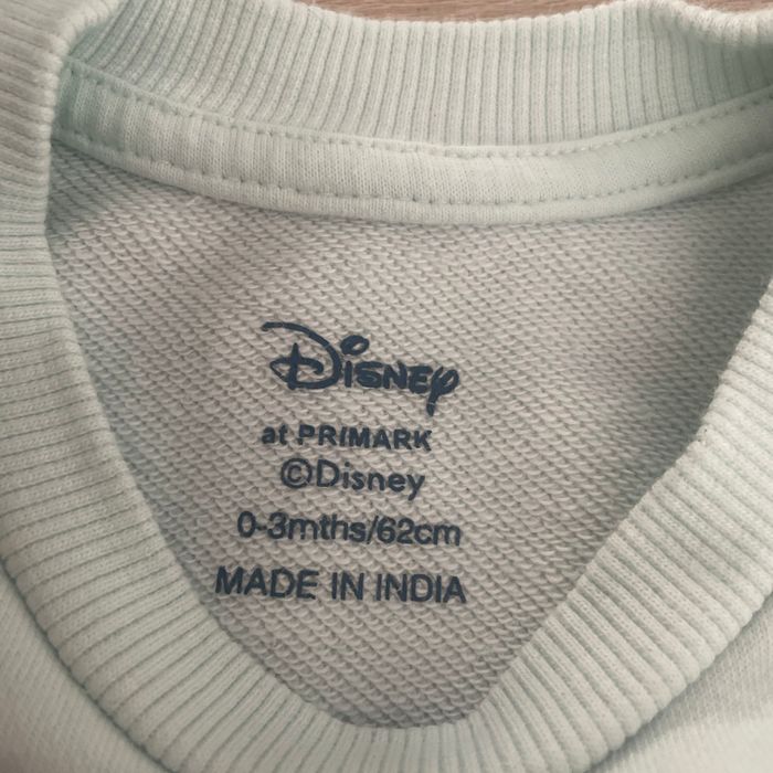 Adorable petit sweat à manches longues pour bébé, de la marque Disney. Coloris bleu pâle avec motifs des personnages Stitch et Angel du dessin animé Lilo & Stitch. Inscription “Cute but Cheeky” à l’avant. Fermeture par boutons-pression à l’épaule pour un enfilage facile. Taille : 0-3 mois (62cm) Entres bon état général