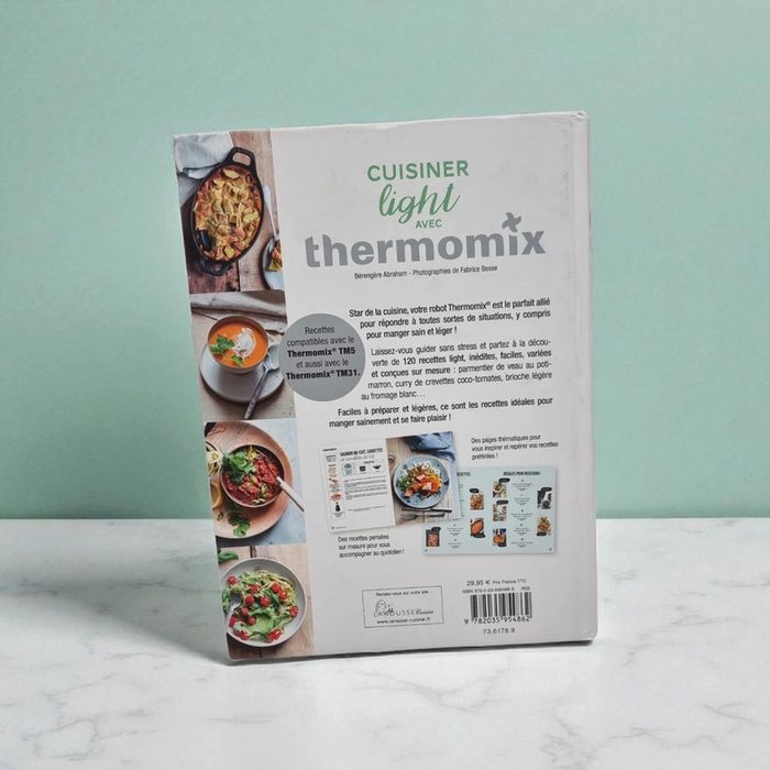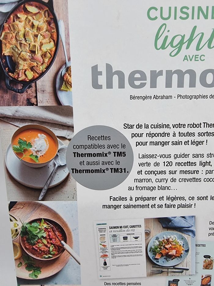 Cuisiner light avec thermomix Éditions Larousse Parfait état Vendu 29,95€ Star de la cuisine, votre robot Thermomix est le parfait allié pour répondre à toutes sortes de situations, y compris pour manger sain et léger ! Laissez-vous guider sans stress et partez à la décou­verte de 120 recettes light, inédites, faciles, variées et conçues sur mesure : parmentier de veau au potimar­ron, curry de crevettes coco-tomates, brioche légère au fromage blanc… Faciles à préparer et légères, ce sont les recettes idéales pour manger sainement et se faire plaisir ! Des pages thématiques pour vous inspirer et repérer vos recettes préférées Des recettes pensées sur mesure pour vous accompagner au quotidien Recettes compatibles avec le Thermomix® TM5 et aussi avec le Thermomix® TM31. Recettes testées 3 fois #thermomix #livrederecetteslight #tm5 #tm31 Balsan.624