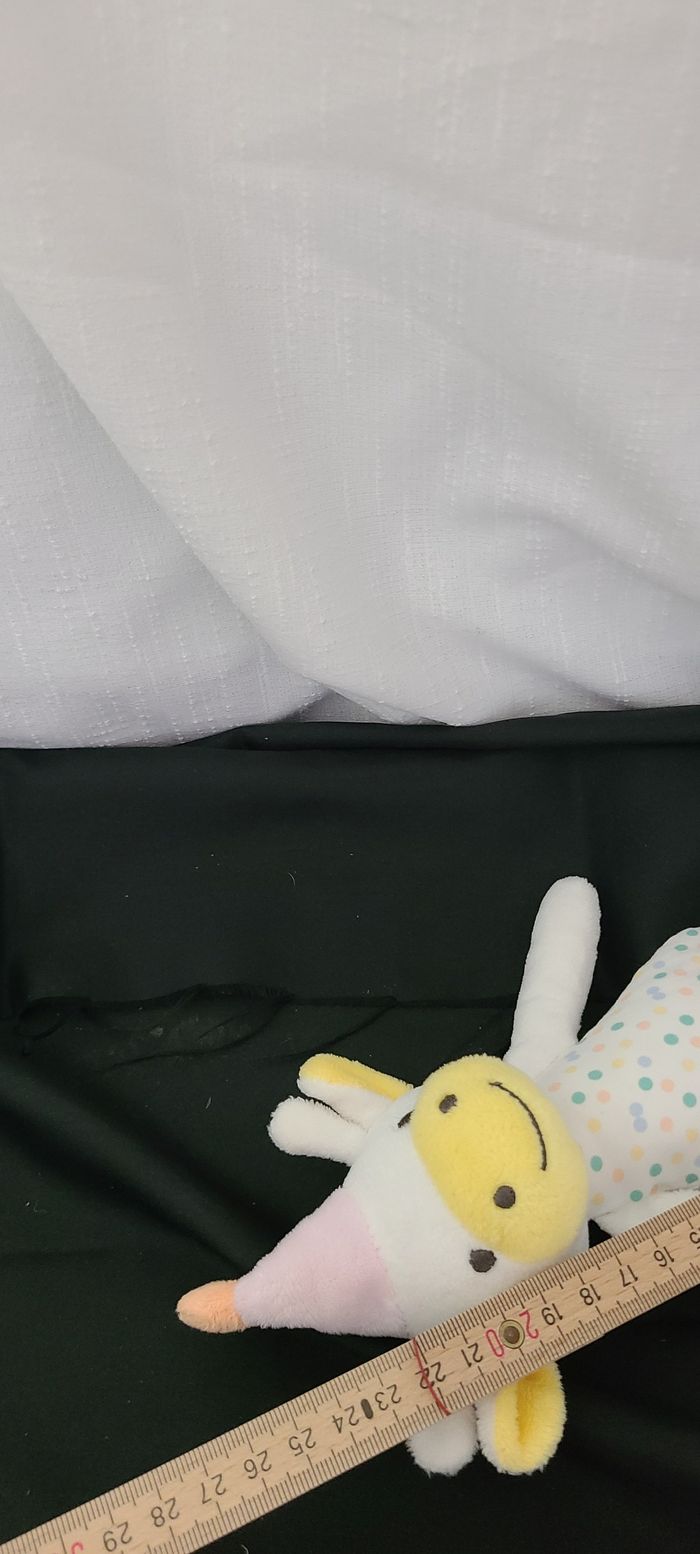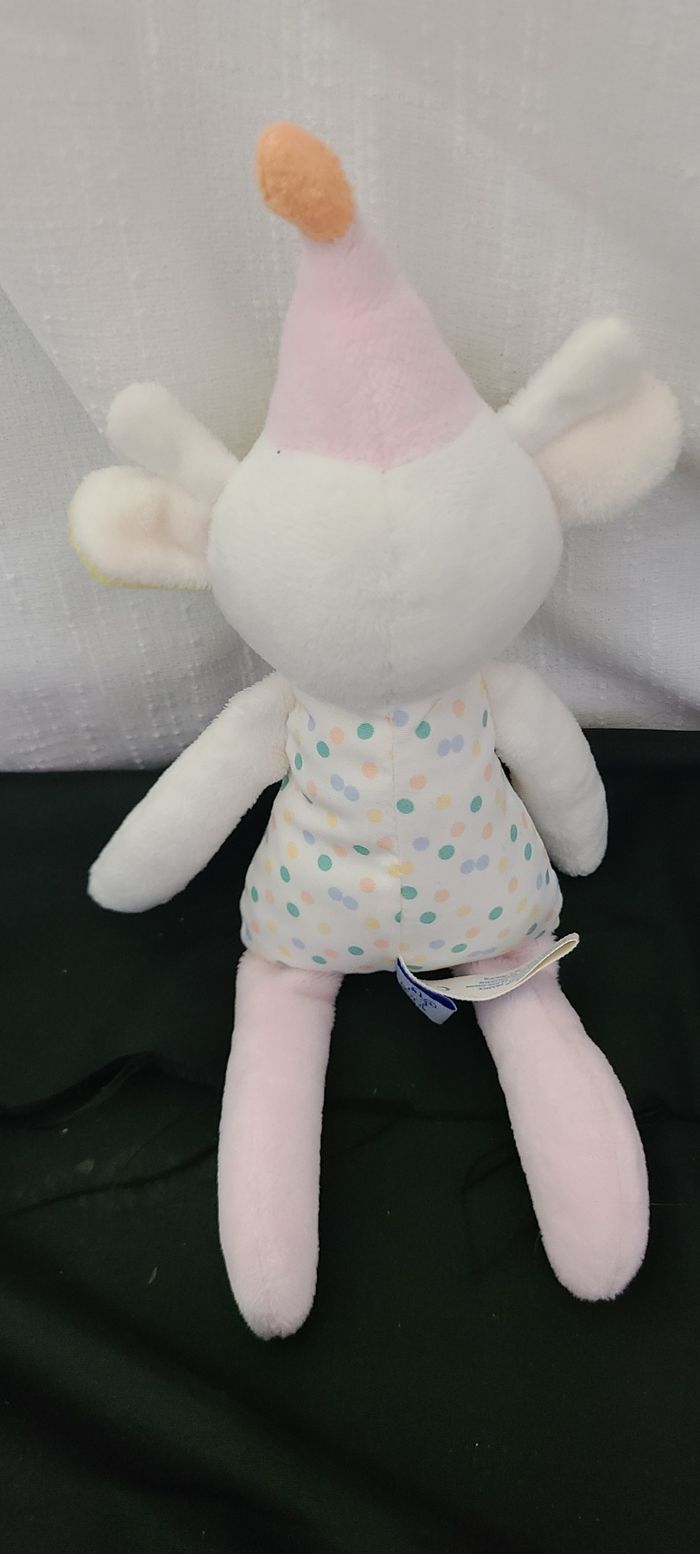 Doudou peluche vache DODIE 26 cm blanc rose jaune chapeau et corps tissu à pois - photo numéro 4