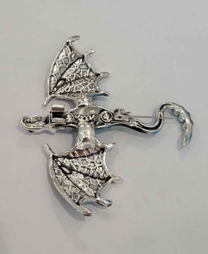 BROCHE DRAGON ARGENTE BLEU STRASS ! NEUF ! - photo numéro 4
