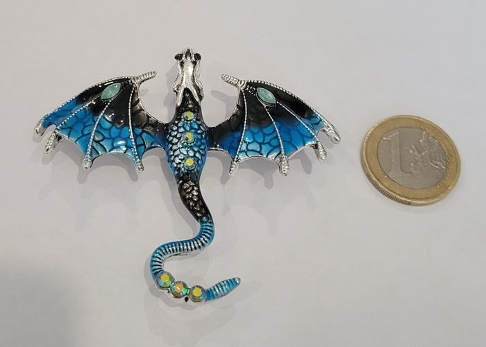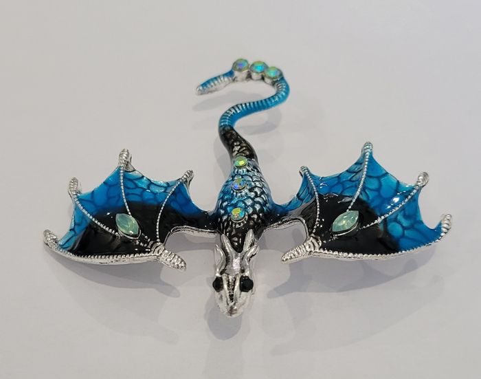 BROCHE DRAGON ARGENTE BLEU STRASS ! NEUF ! - photo numéro 1