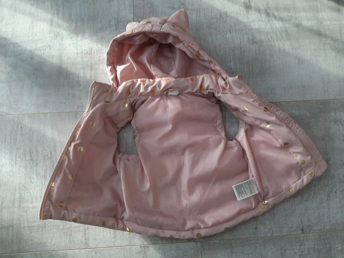 En très bon etat, 1ere main Fermeture éclair, capuche amovible Juste le doré qui est parti à l'intérieur du col mais ne se voit pas une fois portée (voir dernière photo)
